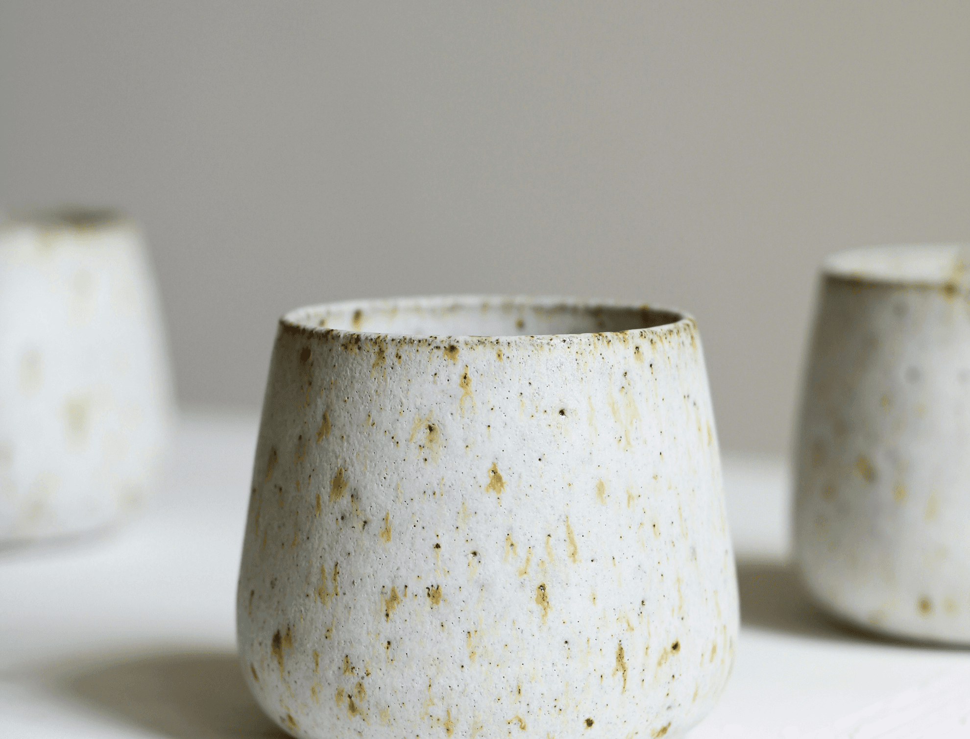 Маленькая чашка из светлой глины, объем 200 мл. Хорошо держит тепло. Поверхность — мягко матовая, цвет — теплый терракотовый