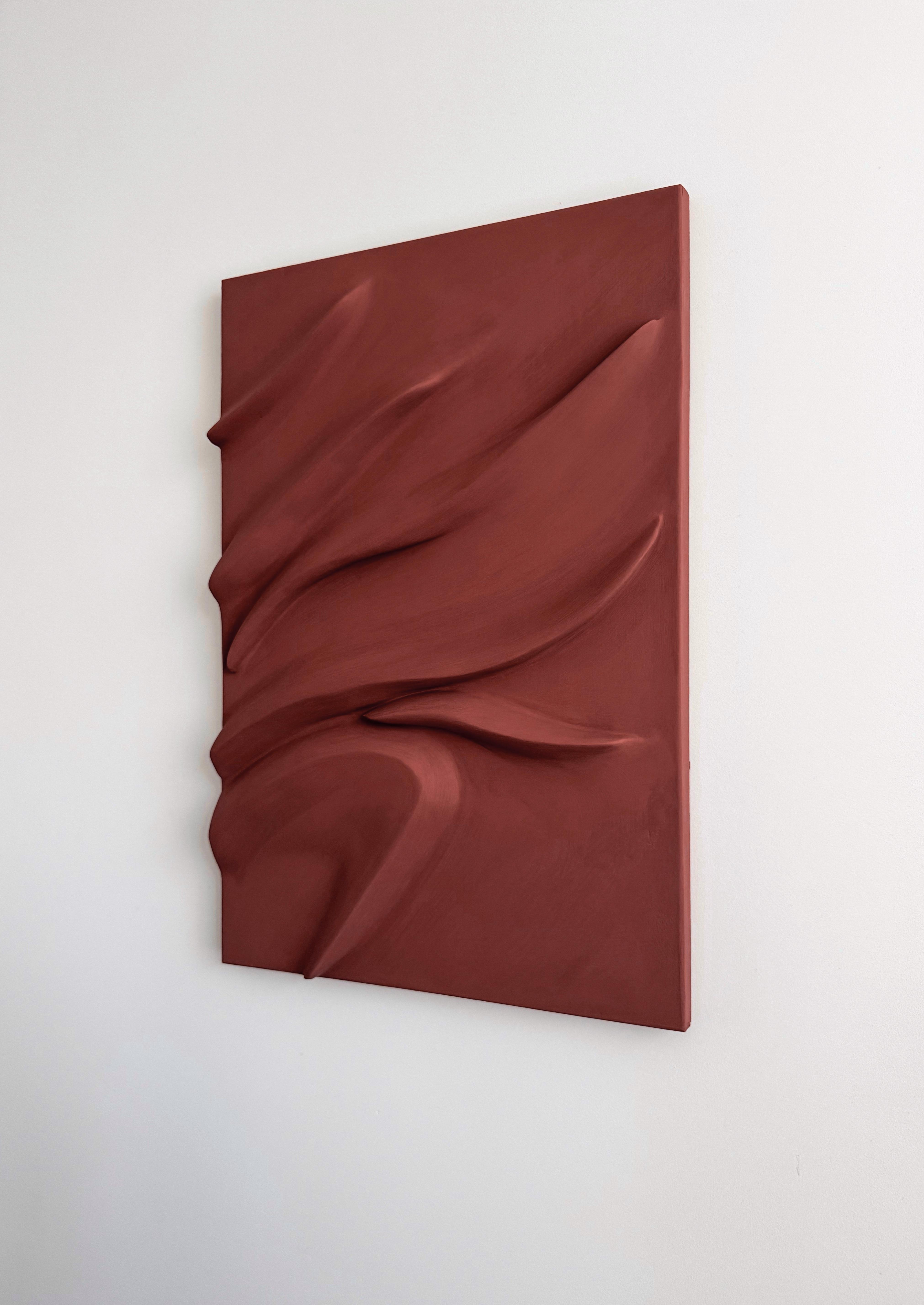Объемная интерьерная картина в смешанной технике. Деревянный артборд, полимерная основа, текстурная паста, акрил, бархатное ультра матовое покрытие. Под заказ возможно дополнить второй картиной в этом стиле. Поверхность — бархатная, матовая, цвет — терракотовый.