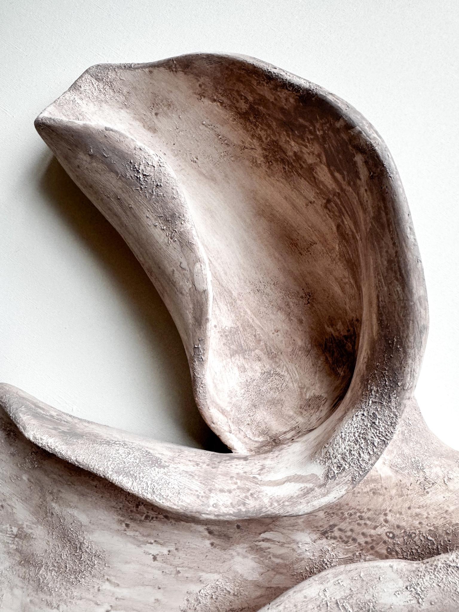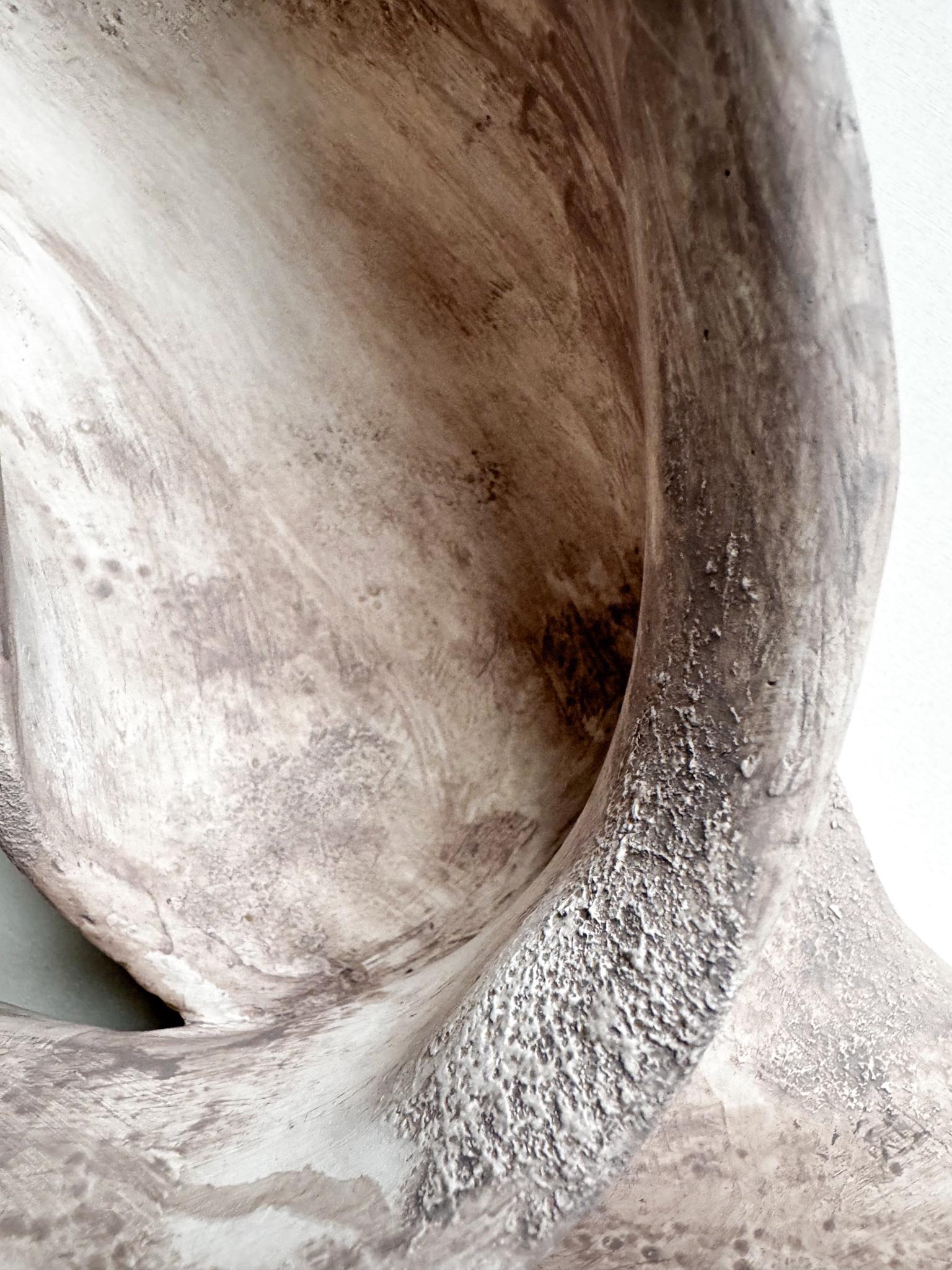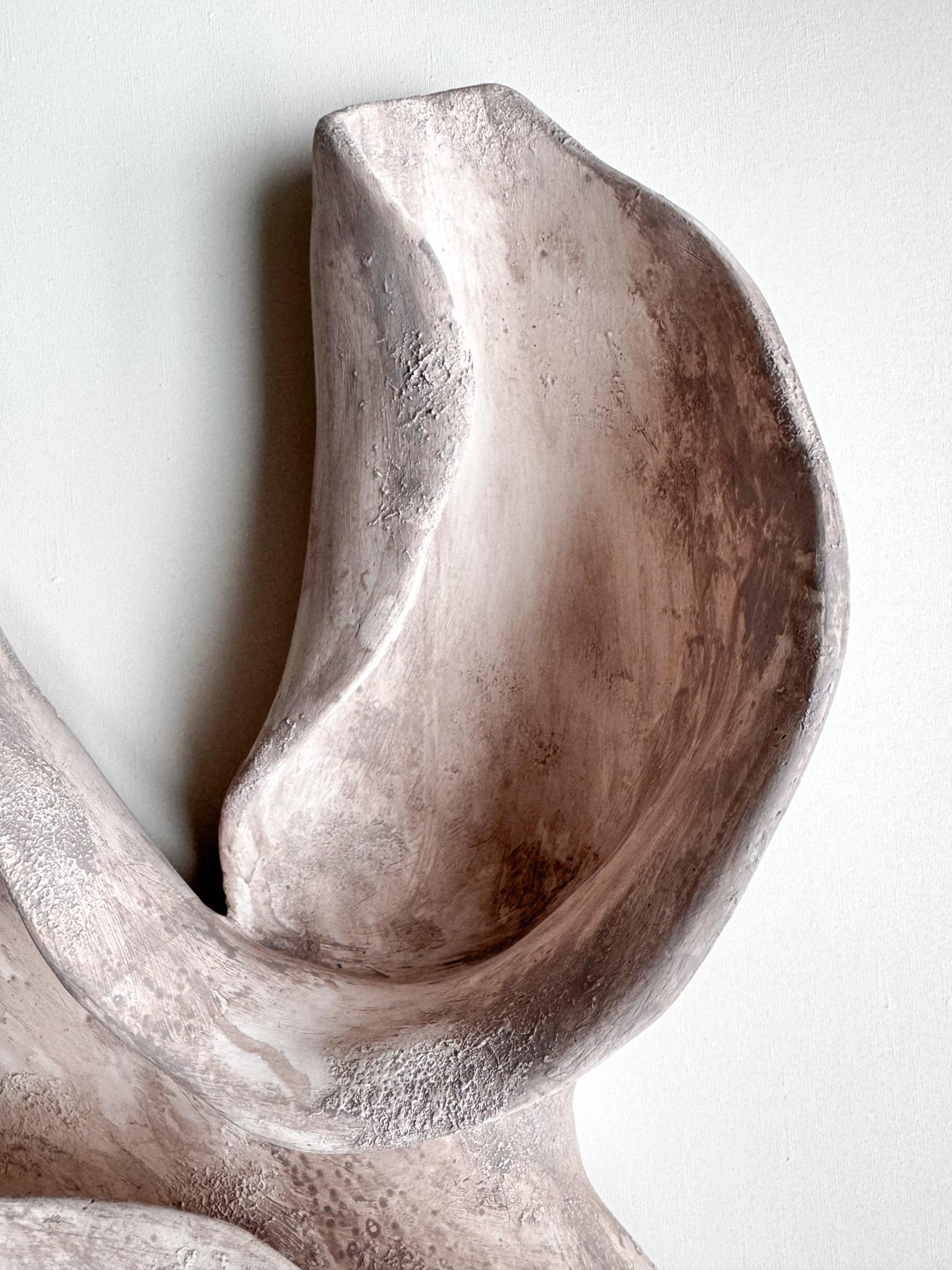 Интерьерное панно на стену с полупрозрачным тонированием. Артборд, металлический каркас, глиняная паста, песчаная паста, акрил. Поверхность — ультра матовая, цвет — бежевый. Возможен окрас в индивидуальный цвет по RAL.