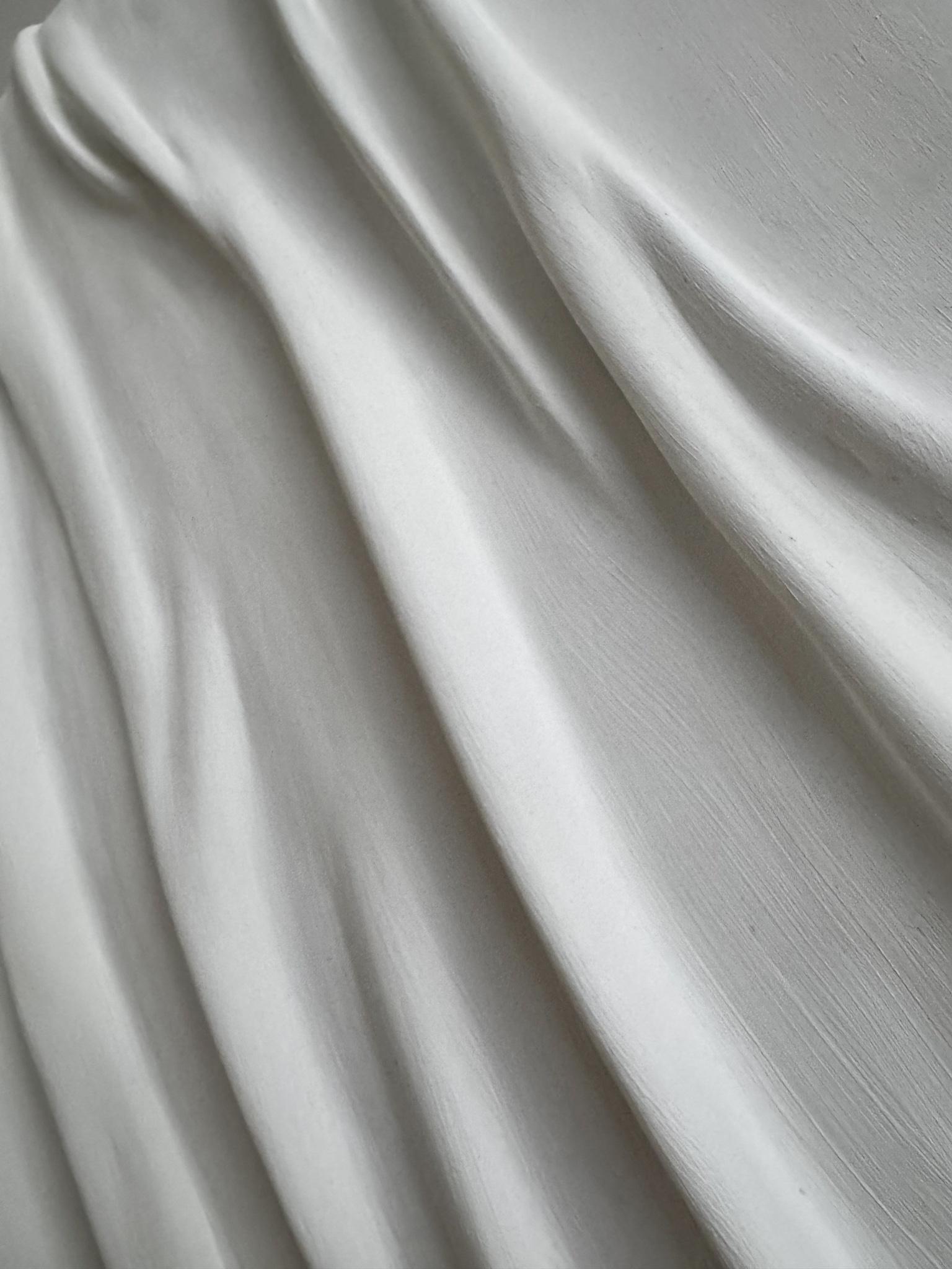 Объемная белая картина с эффектом драпировки ткани. Деревянный артборд, текстурная паста, акрил, матовое покрытие. Поверхность — матовая, цвет — белый.