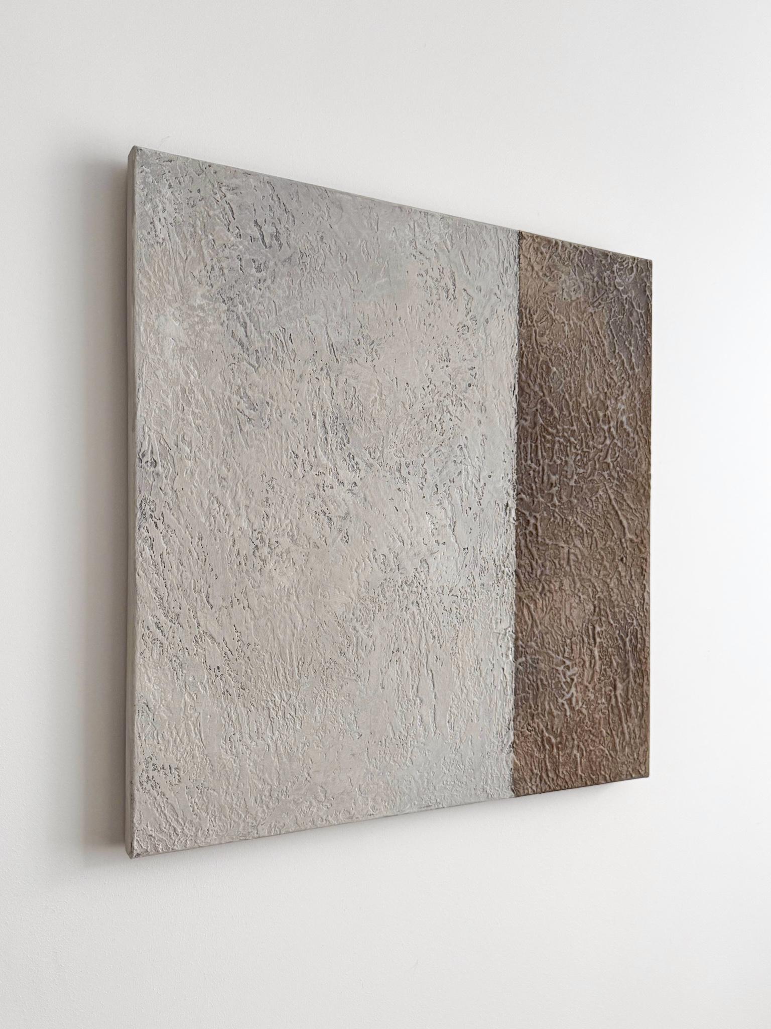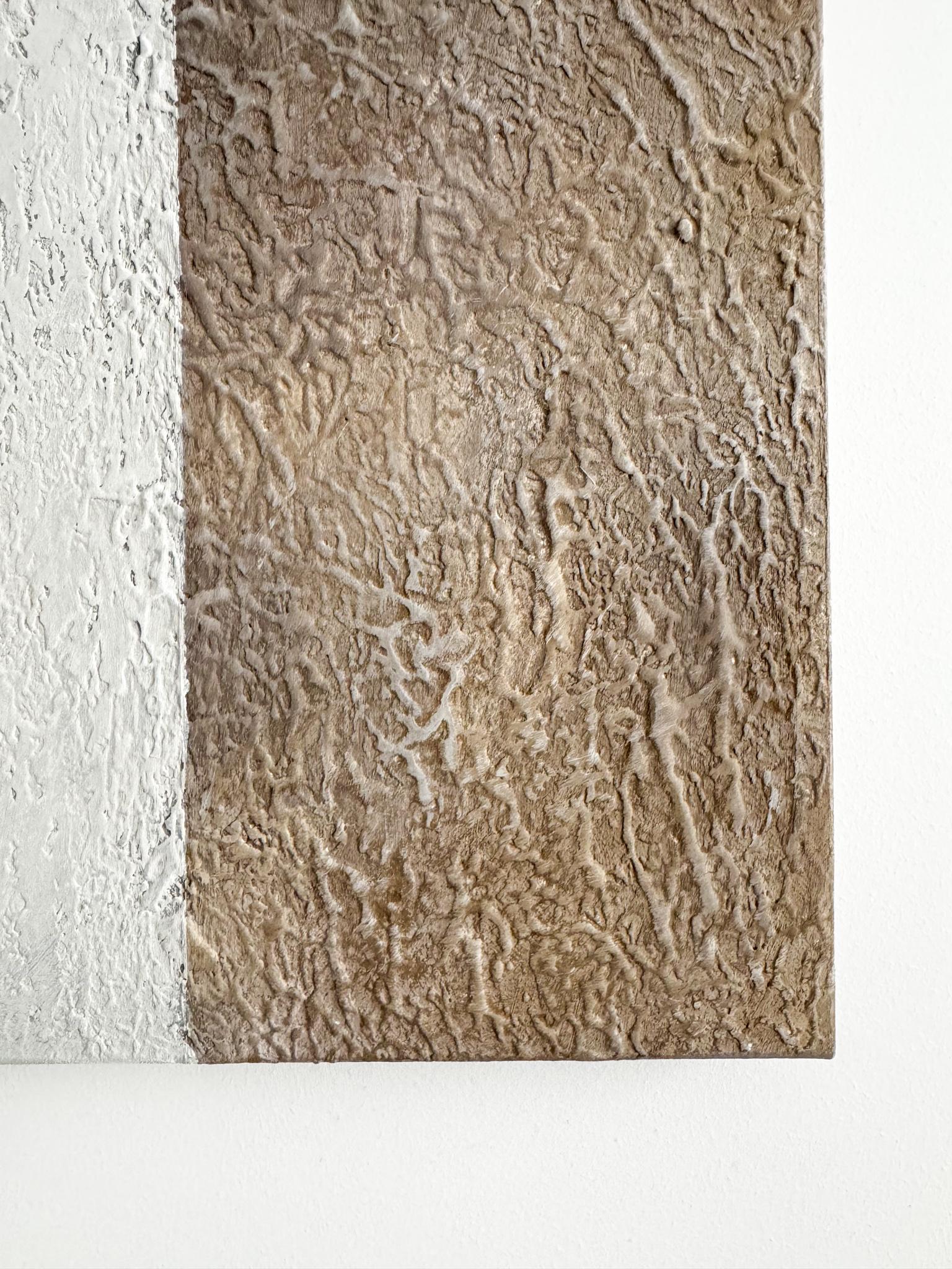 Интерьерная картина с песчаной текстурой. Холст, полимерная паста, песчаная паста, акрил, глянцевое покрытие. Поверхность — текстура глянцевая, цвет — тауп, коричневый, серый.